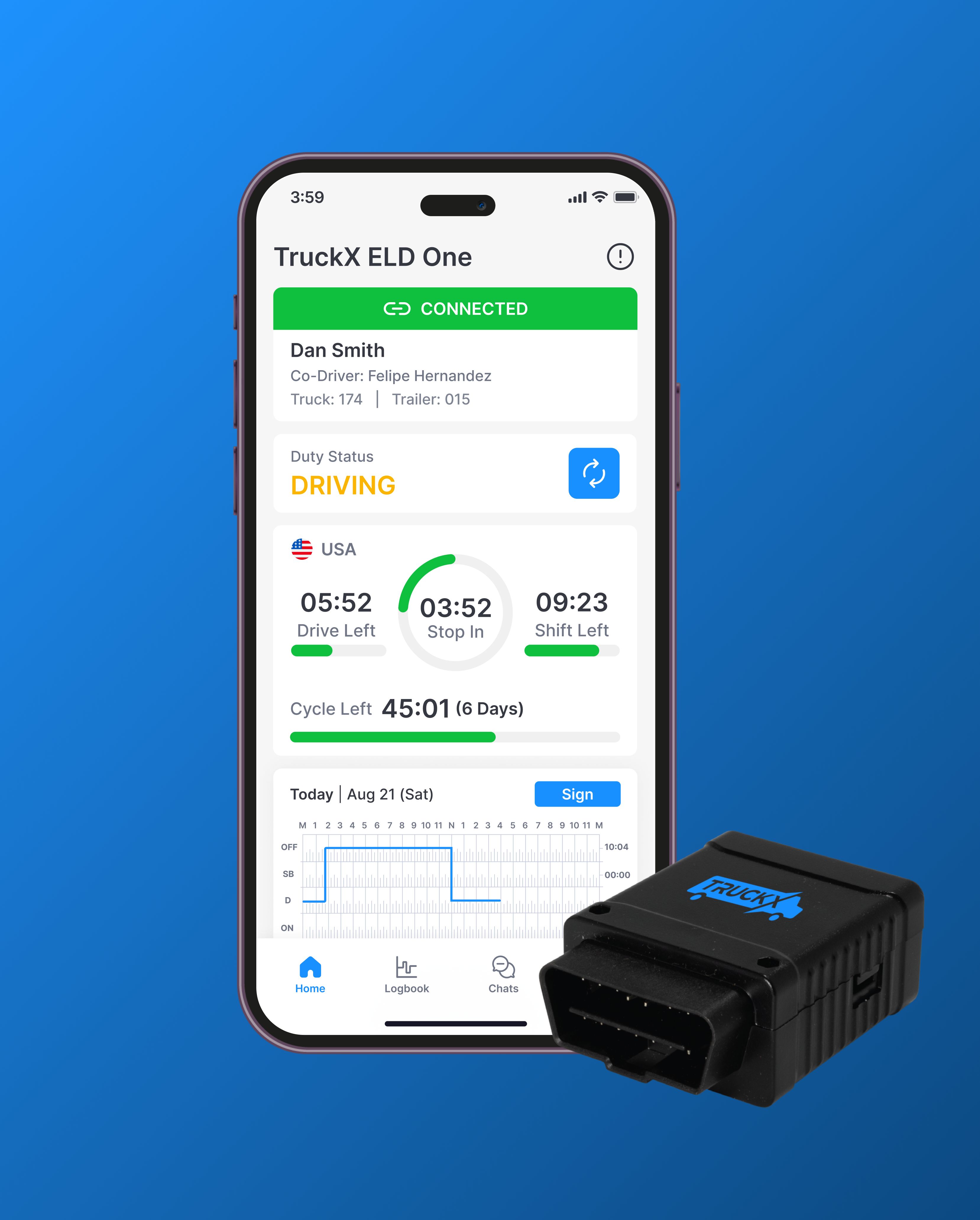 | TruckX ELD One | TX300 | 2.2.0+ | TRX300 | Download | Download | TruckX Inc | 650-600-0008 | contact@truckx.com | http://www.truckx.com/ | 9300 Jollyville Rd #107, Austin, TX 78759 | Telematic (Web Service, Email) | Web Services and email are supported for data transfer 1. Open TruckX app on phone. 2. Click "More" on the bottom right 3. Click "Dot Inspection" 4. Four options - "Data Transfer", "View", "Print", "Email" are available. 5. Click on "Data Transfer" 6. Add comment for transfer and choose transfer method - "Email" or "Web" Detailed instructions are in the user manual | Malfunctions are collected per 395.34 of ELD mandate rule described under section 4.6 and per table 4 including power, engine synchronization, timing, positioning, data recording, data transfer, and required data elements. RED error icon is shown on every screen when ELD malfunction is detected. Driver can click on error icon to see more details. Please refer User Manual for details | ELD is built based on our 7 years of experience. This is an upgraded experience for the users. TruckX has tested the devices on the road. ELD passes the tests as per ELD specifications mentioned in subpart B of part 395 |