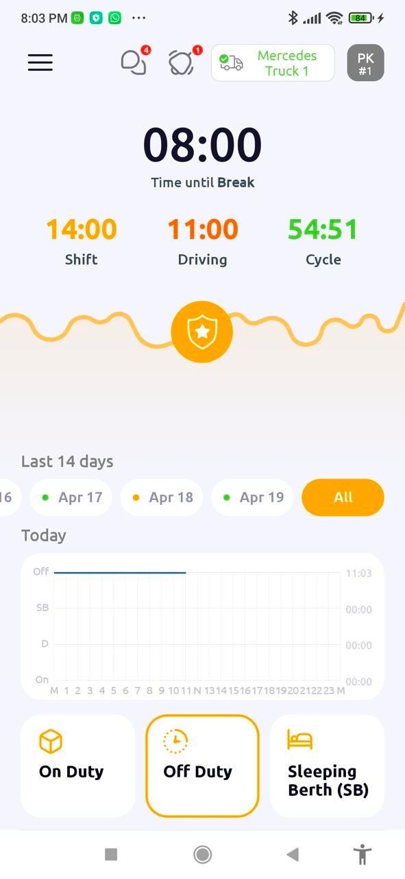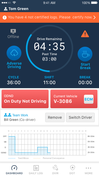 If an internet connection cannot be established the driver can select “Inspect Logs and Recap” and pass the device to the safety official who can then view the current and last 7 days logs.